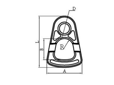 | CÓDIGO DO ITEM | PESO (KG) | LIMITE DE CARGA DE TRABALHO/T | CARGA DE RUPTURA/T | A±0.5 | B±0.5 | R | D | L±1 |